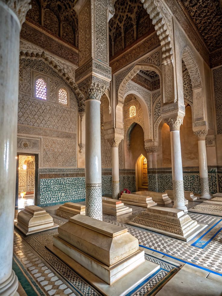 Discover the extraordinary Saadian Tombs, hidden for centuries until 1917 and showcasing Morocco's finest 16th-century decorative artistry. Marvel at the intricate stucco work, colorful zellij tiles, and the breathtaking Hall of Twelve Columns with its star-shaped dome. Set in peaceful gardens filled with roses and orange trees, these remarkably preserved royal mausoleums offer guests an intimate encounter with Morocco's architectural mastery, located just a short walk from our riad near the historic Kasbah district.